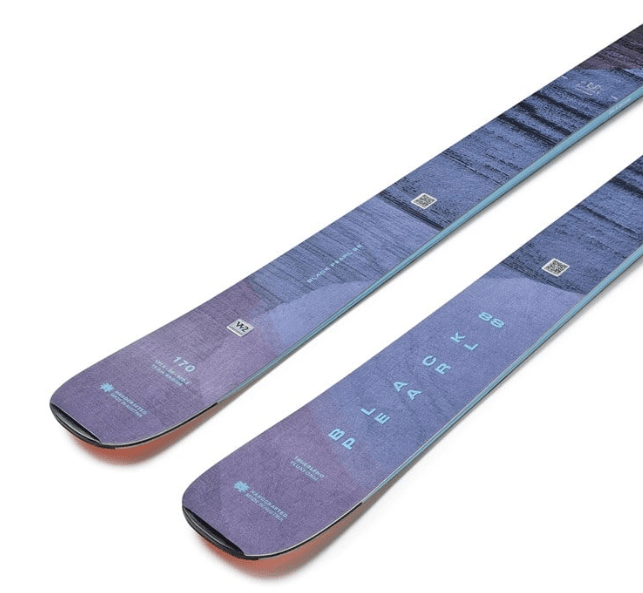 Two-Piece W.S.D. Titanal Laminate for Grip and Stability – No longer a single sheet of Titanal, the 2025 Black Pearl uses a two-piece laminate with a sheet of fiberglass in between the layers. The upper layer of metal resembles the shape of the FluxForm Titanal layer in the Sheeva skis and the lower layer fills in the gap in the center.