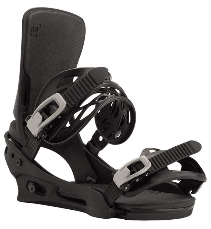 Re:Flex™ Binding System – Offers more flex, feel, and cushioning than traditional disc bindings, in a package that's universally compatible with all current mounting systems, including 4x4, 3D® (via Burton Rider Service, sold separately), and the Channel®. The minimized, cored base-plate with Living Hinge™ disc reduces the weight and footprint of the binding, while also bending freely for a more natural flex.