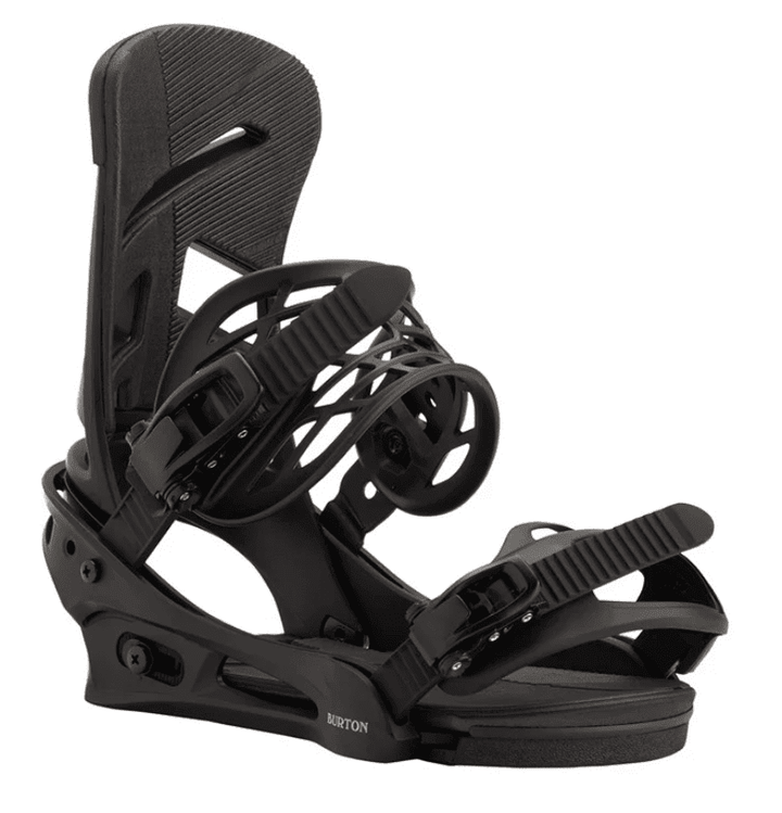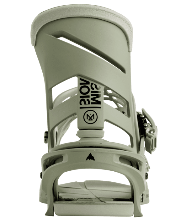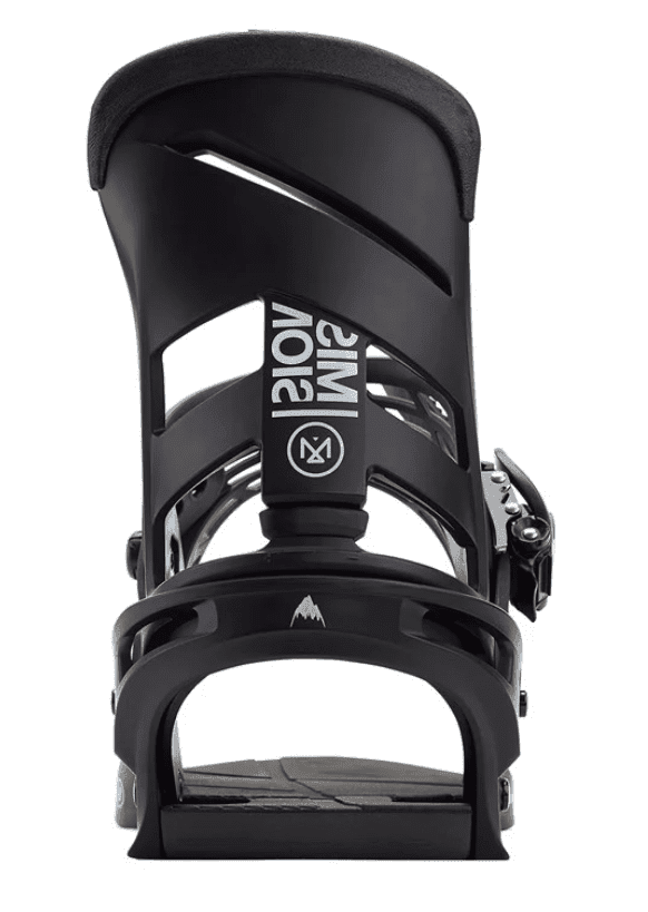Re:Flex™ Binding System – Offers more flex, feel, and cushioning than traditional disc bindings, in a package that's universally compatible with all current mounting systems, including 4x4, 3D® (via Burton Rider Service, sold separately), and the Channel®. The minimized, cored base-plate with Living Hinge™ disc reduces the weight and footprint of the binding, while also bending freely for a more natural flex.