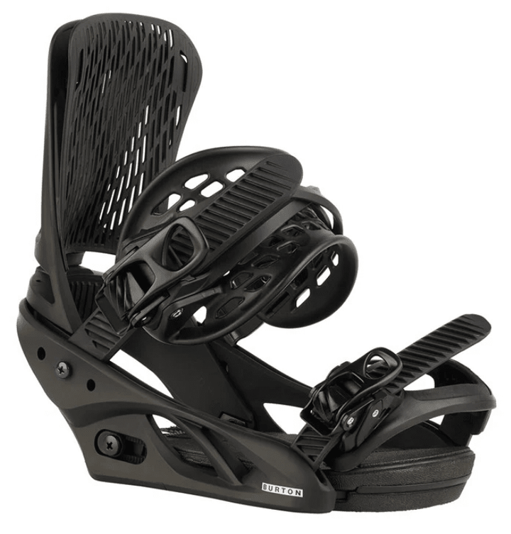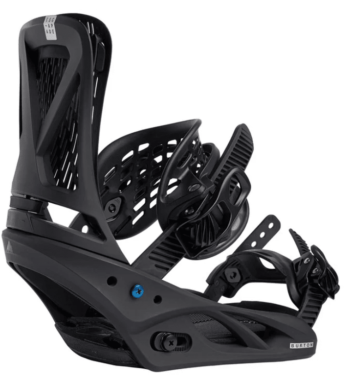 Re:Flex™ Binding System – Offers more flex, feel, and cushioning than traditional disc bindings, in a package that's universally compatible with all current mounting systems, including 4x4, 3D® (via Burton Rider Service, sold separately), and the Channel®. The minimized, cored base-plate with Living Hinge™ disc reduces the weight and footprint of the binding, while also bending freely for a more natural flex.