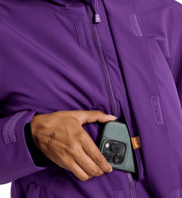 Stuff like an ATM Pocket inside a handwarmer pocket, an easy-access goggle pocket, an insulated phone pocket, plus a dedicated pass pocket make for smooth days on the mountain.