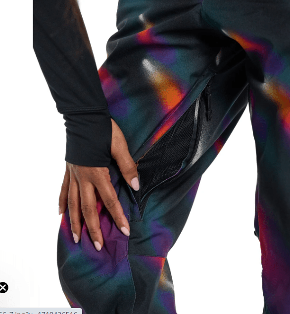 Mesh-lined thigh vents let you fine tune your temp.- Zippered hand-warmer pockets and hook-and-loop closure back pockets
