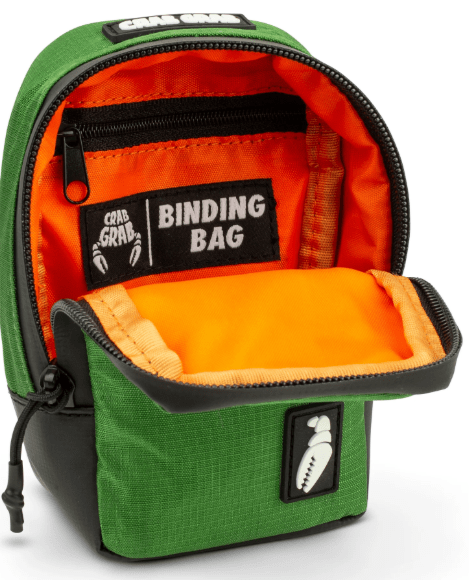 Fill these tough little bags with the tiny treasures you don’t want in your pockets: tools, wax, keys, candy, cash, whatever. Built with a sealed zipper and dry bag bottom, these Binding Bags fit most known bindings. Bindings not included.
