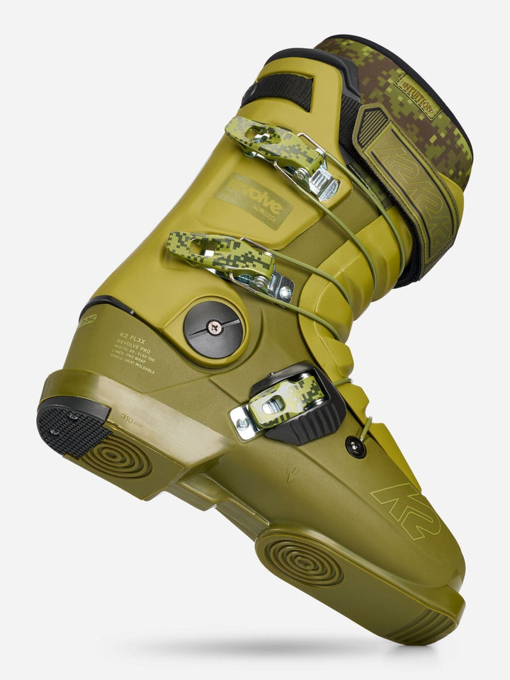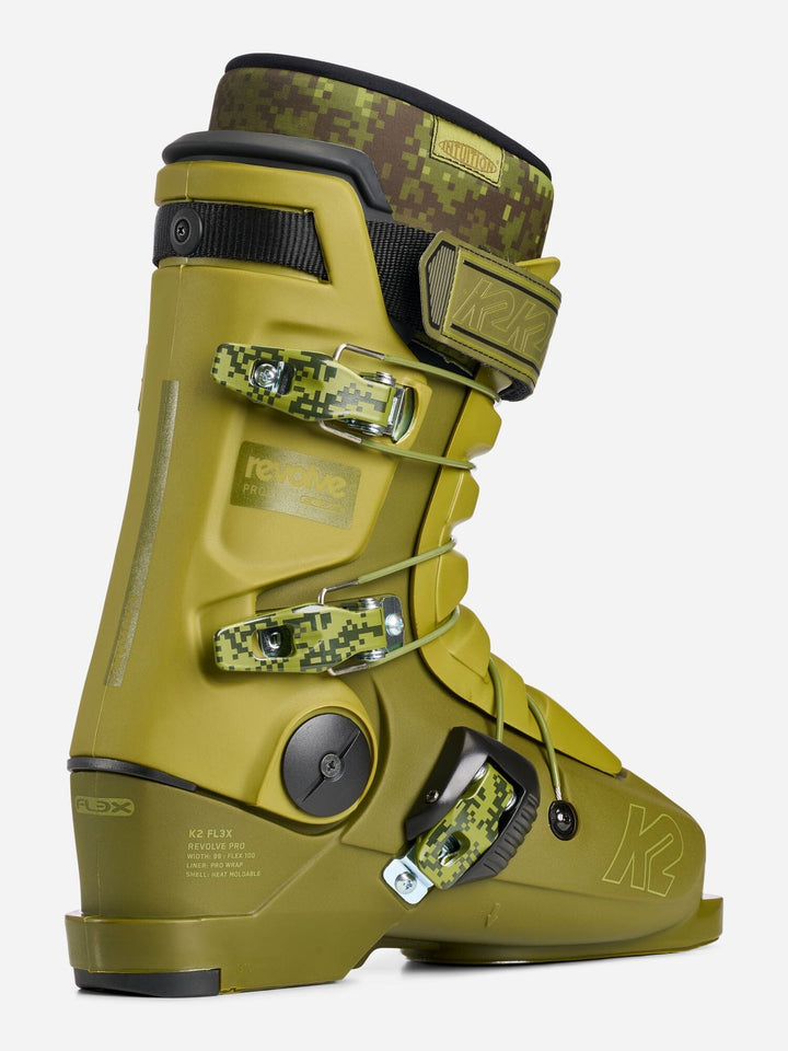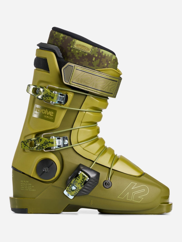 The K2 Revolve Pro ski boots are your ticket to sending it big with featherlight freedom and freestyle flair. Built for park rats and mogul masters alike, these boots are among the lightest in the game, making spins, grabs, and stomps feel effortless. They feature a fully heat-moldable Revolve Shell, 100 flex, and an Intuition Pro Wrap liner providing a customizable fit and responsive control for skiers who live to play on the mountain, and who doesn't love that extra pop of color?!