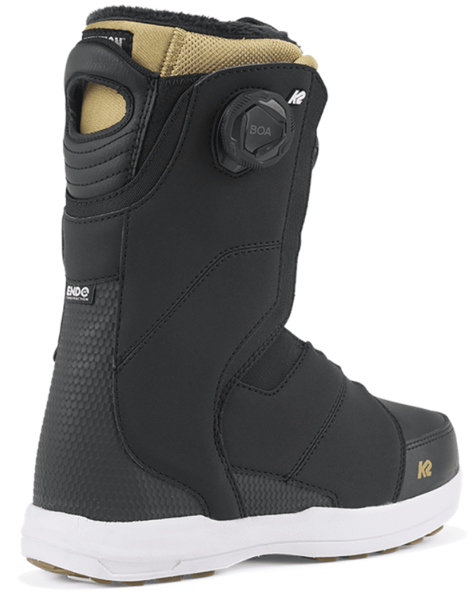 Boa® Conda™ Liner Lacing – A patented K2 liner lacing system that uses a urethane harness to gently hug your ankle, creating unrivaled heel hold. Boa® Conda™ allows for adjusting liner tightness and heel hold on the fly from outside of the boot, even with gloves on.