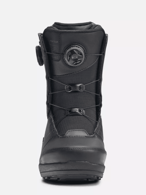 The secret to the award-winning fit is our Conda™ liner lacing system. Powered by a BOA® Fit System dial, this forgiving and adjustable harness is designed to pull the user's heel into the boot's heel pocket. This urethane-based harness hugs your ankle and flexes naturally. Externally, we started with an articulating cuff to reduce distortion when bending the knee, and we've integrated our Flex Zone calf panel at the top of the cuff, helping to keep legs happy all day long. A high-powered BOA® Fit System H4 Coiler closes the shell securely and can be done without removing your gloves. Lastly, to add durability and maintain the boot's flex over the boot's lifetime, we constructed the K2 Contour using our Endo™ technology.
