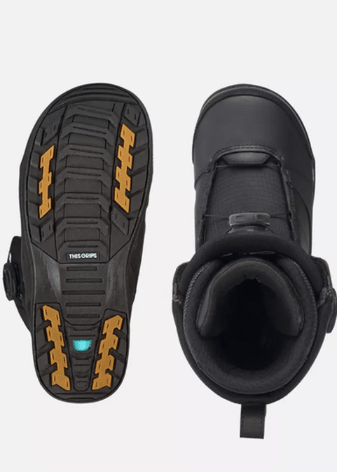 Underfoot, we've used premium materials to improve damping and grip. The outsole is built using our proprietary This Grips!™ dual-rubber compound to provide excellent grip both on and off the snow. This is all set atop a dual-density midsole comprised of a lightweight EVA and our proprietary Harshmellow™, designed to dampen vibration on rough terrain, and cushion big landings.