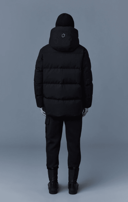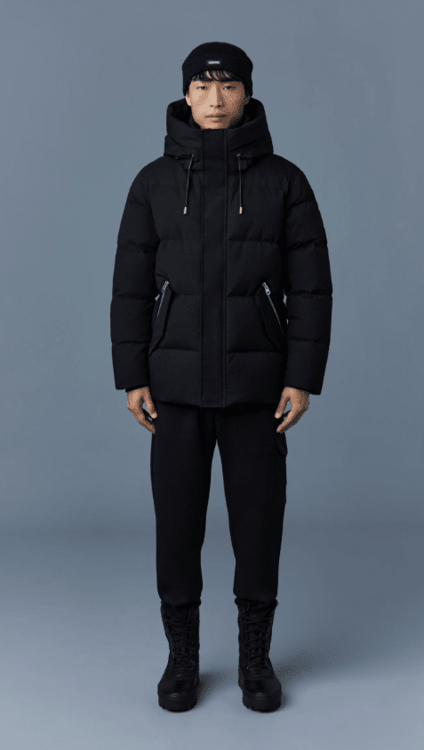 - Shell : 59% polyamide/nylon, 41% polyester. Combo shell 1 : 100% polyamide/nylon. Combo Extérieur: 45% wool, 45% acrylic, 10% elastane/spandex. Lining : 100% polyamide/nylon. Filling: 90% duck down, 10% feathers.