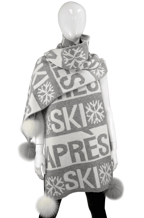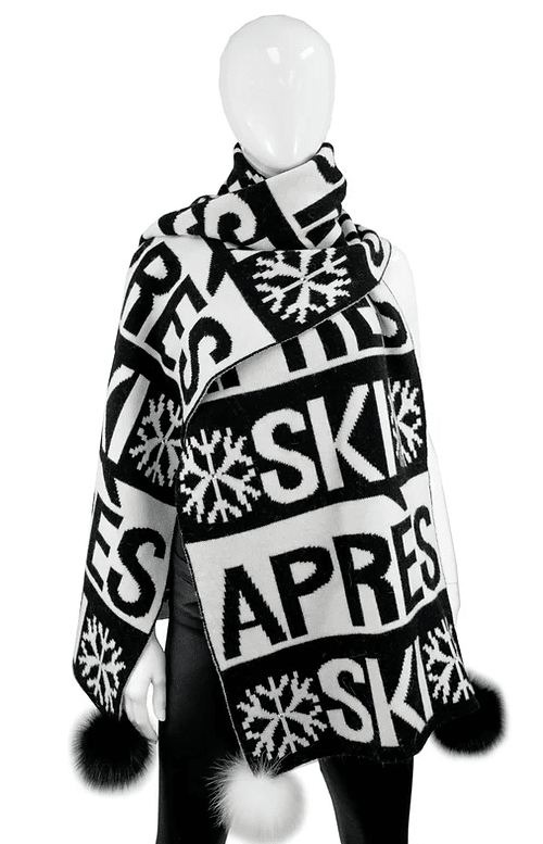 Knitted Oversized "Apres Ski" Scarf, Fox Fur Poms