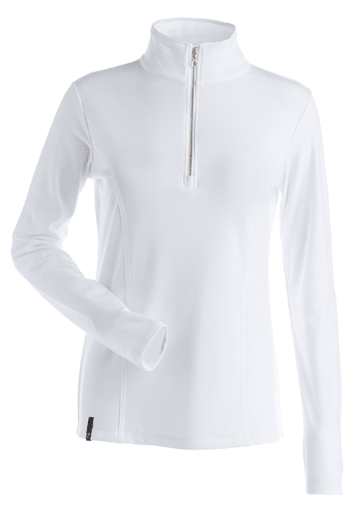 Classic 1/4 zip t-neck in a luxurious Italian fabric with an interior brushed finish. This top features natural wicking properties and 50SPF.