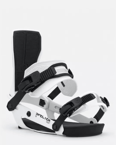 At a time when many of our competitors are focused on gimmicky, clunky, over designed bindings that prioritize the number of times you bend over per run over actual snowboarding performance- RIDE introduces the Specter. The lightest weight, highest performance freestyle binding ever made. We stripped the Specter down to assure performance is the priority. The Specter is built off our A-Series chassis, this aluminum chassis offers light weight durability backed by our lifetime warranty. The unique properties of aluminum allow the binding to flex with your board providing the ultimate freestyle feel. We’ve optimized the forward lean angle and flex to be perfect for freestyle riding and with the new flat nylon highback we’ve eliminated the forward lean block. Let’s be honest, you were going to take that thing off anyway to save the weight. The all-new ankle strap uses a urethane material to create a medium flexing frame, cushioned with a softer material to provide better pressure distribution when tightened. Making this strap one of the most comfortable in the line. The minimalist toe strap will fit over the top or the front of your boot without adding any additional weight. The Specter is 30 years of freestyle snowboarding dominance refined into its most basic form.