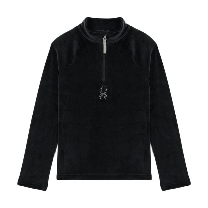 You can't go wrong with the Shimmer Bug 1/2 zip in cozy velour fleece. This classic pullover with a jeweled crystal logo comes in an array of uniform colors that match any Spyder kit.