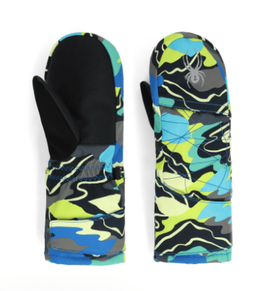 The Cubby Ski Mittens are built with EXO SHIELD 10K/10k recycled fabric and PrimaLoft® Silver Eco Insulation (100g ). They are equipped with a heat pack pocket and adjustable wrist strap. The leash lets you connect the mittens to the small loop on their Spyder jacket, ensuring you won't have to chase down dropped mittens.